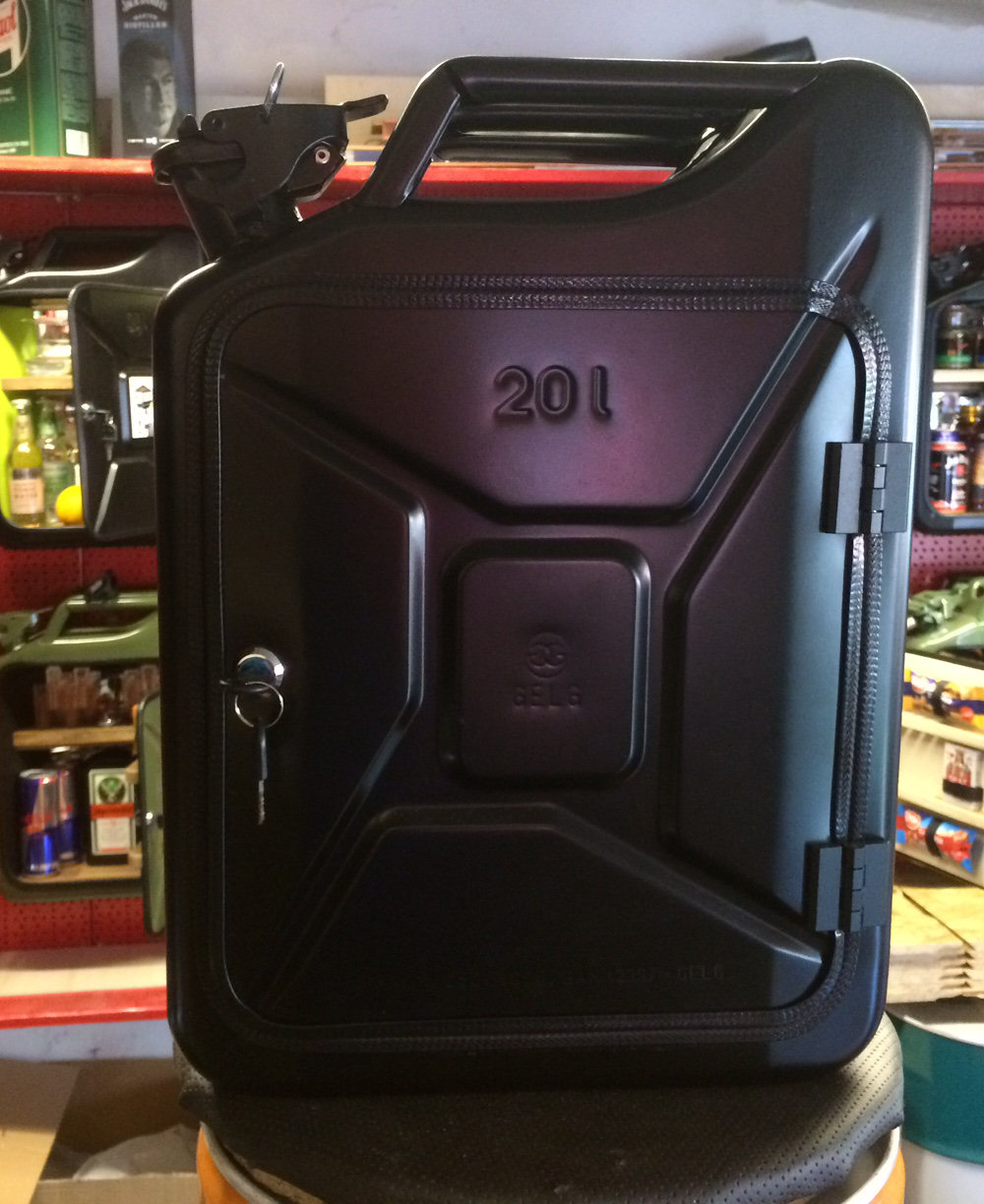 Kanister gibt es grundsätzlich in 5, 10 und 20 Liter-Variante und in den unterschiedlichsten RAL-Farben. Ich habe zur Zeit nur 20 Liter Kanister in Schwarz, Oliv, Rot, Orange, Blau, Gelb und als Sonderlackierung Camouflage im Angebot.