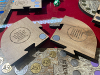 Ergänzt werden kann das Spiel durch zusätzliche Münzpakete, einem Adapterset zum Bau von 2-er oder 3-er Spielfeldern sowie einer Geschenkbox aus Holz.